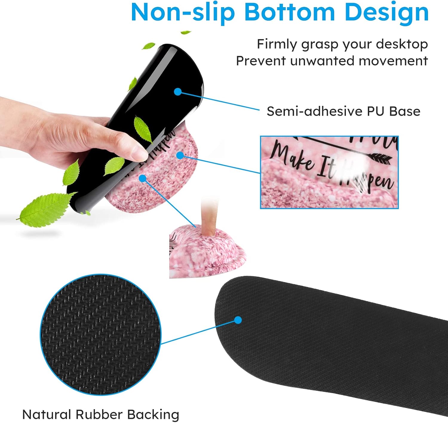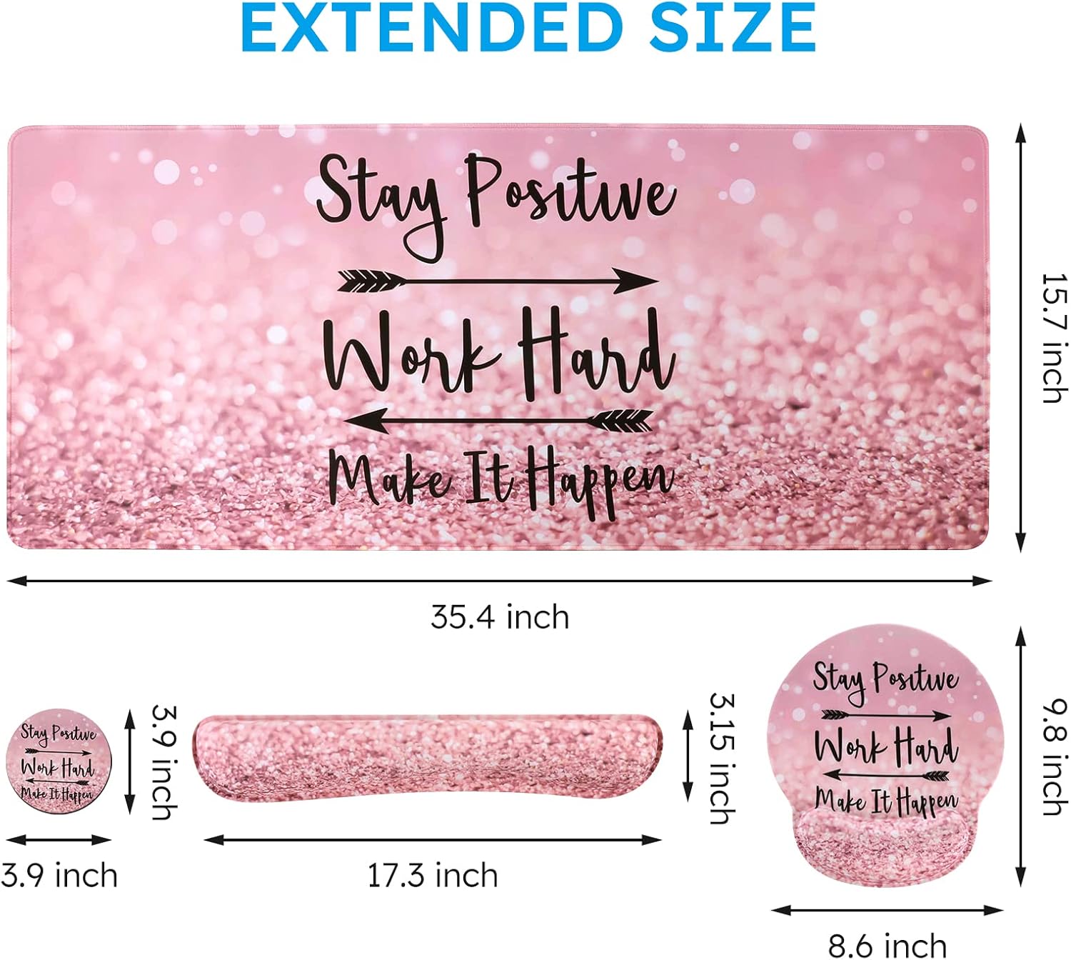 iCasso Mouse Pad,Large Pink Desk Mat, 4in1 XXL Mousepad + Keyboard Wrist Rest+Mouse Wrist Rest+Coaster Set with Ergonomic Desk Pad for Home Office Table Computer-Pink Stay Positive